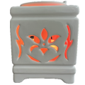 日本人に愛されてきた茶葉の自然な香りは多くの人に癒しを与えてくれることと思います 弊社の新開発抵抗器ヒーターを熱源とし、芳香皿のみを加熱します 美しいLEDの灯りを演出する本体には 佐渡ヶ島とカンゾウ花(ユリ)を描いた匠の技透かし彫りを施してあります |